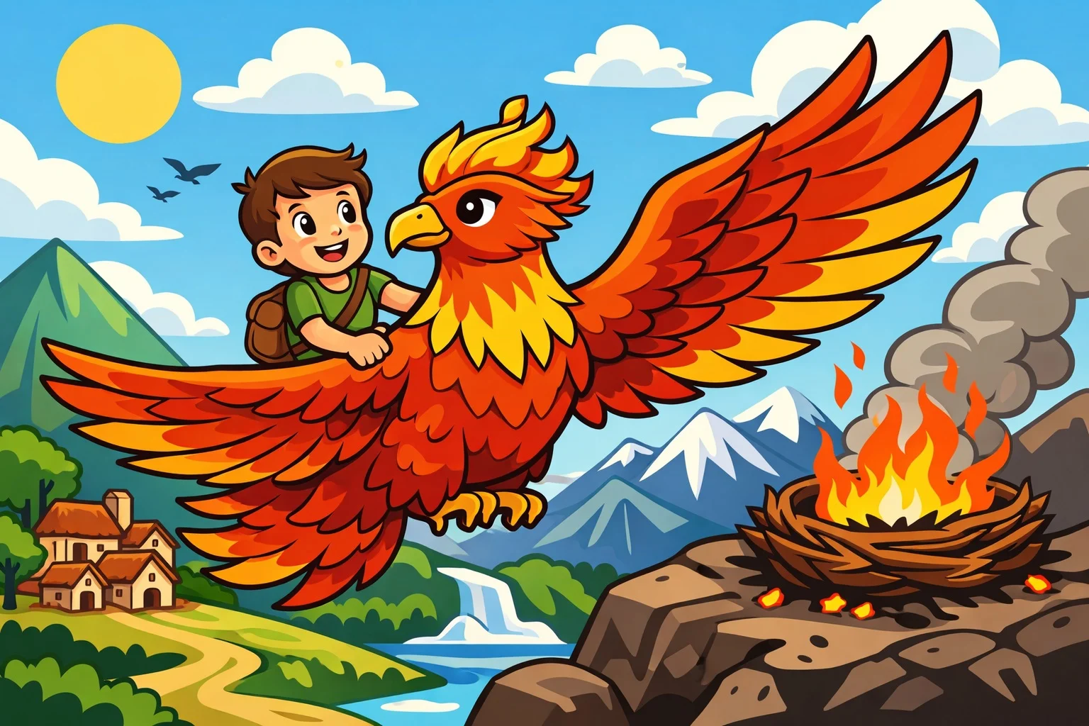 Anka Kuşu Mert’i sırtına aldı ve birlikte gökyüzüne yükseldiler. Bulutların üzerinde, rüzgârın şarkı söylediği bir yerde indiler. Orada, sönmeye yüz tutmuş bir ateş yuvası vardı.
