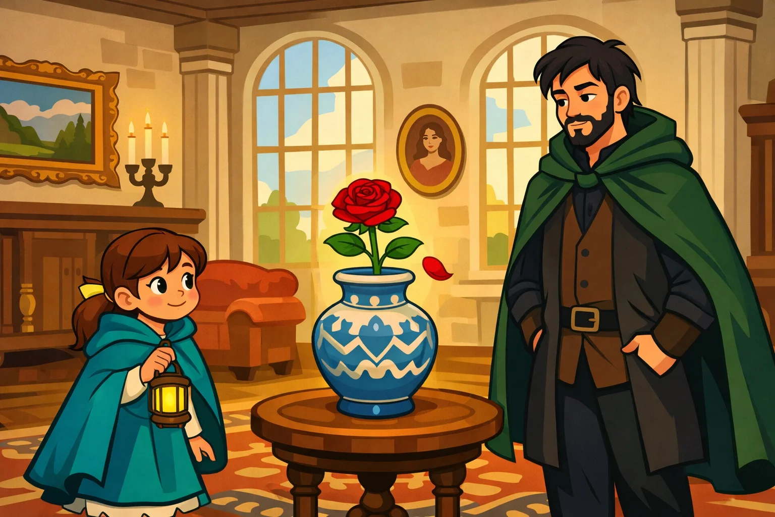 Elif kapıyı itti. Kapı gıcırdayarak açıldı. İçerisi sıcaktı. Büyük bir salon, yüksek tavanlar, duvarlarda eski tablolar… Ama en çok dikkat çeken şey, salonun ortasında duran kocaman bir gül vazosuydu.