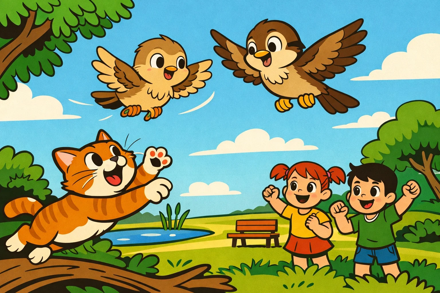 Ama Pıtırcık artık yerde değildi. Kanatlarını daha güçlü çırptı. Yükseldi. Tombik’in patileri havayı tırmalar gibi kaldı. Kedi, bir an durdu; sonra kızgınlıkla miyavlayıp başka tarafa kaçtı.