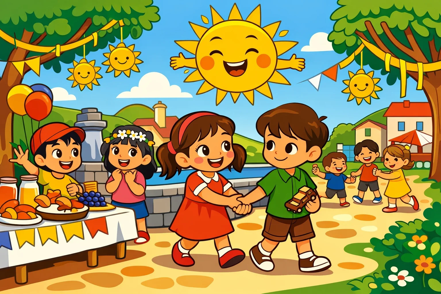 Güneş yavaş yavaş alçalmaya başladı. Gökyüzü sarıdan turuncuya, turuncudan pembeye döndü. Kasabanın üstünde şeker gibi bir akşam ışığı kaldı. Meydandaki herkes vedalaşırken yüzlerinde yorgun ama mutlu bir ifade vardı. Sanki gün boyu yalnızca eğlenmemiş, içlerine minik altın taşlar doldurmuşlardı.