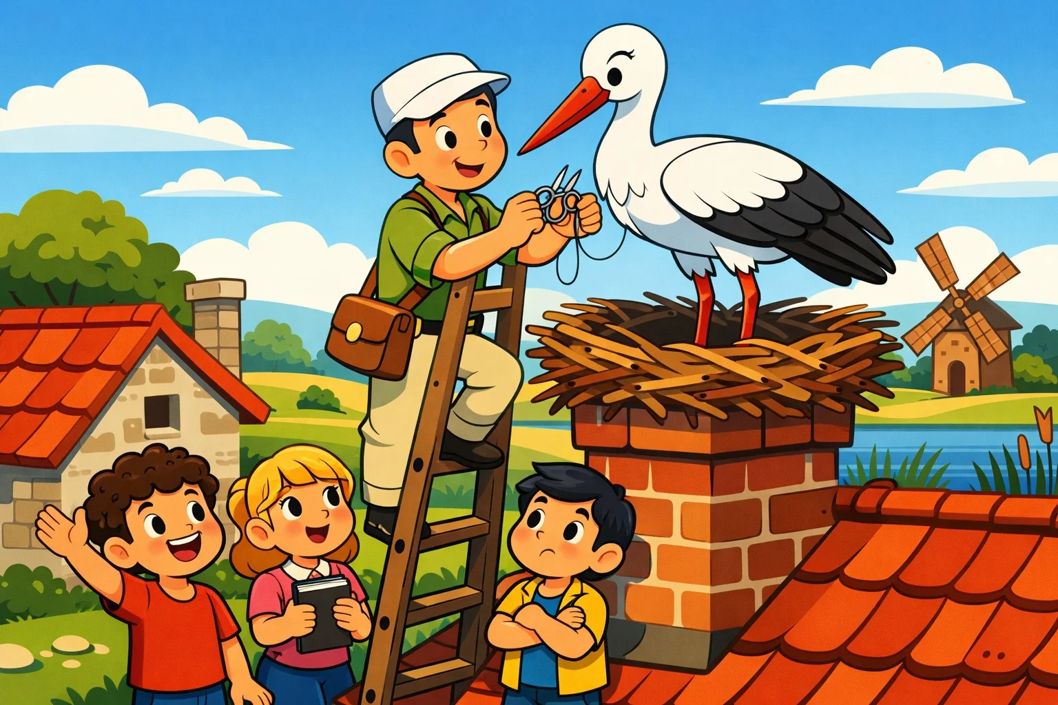 O sabah çocuklar çeşmenin yanında toplandı. İçlerinde en heyecanlı olanı, kıvırcık saçlı, gözleri pırıl pırıl bir çocuktu: Baran. Baran’ın yanında, elinde küçük bir defter taşıyan Ecrin vardı. Ecrin her yıl leylekleri gözlemler, gördüklerini yazardı. Bir de Efe vardı; her şeye itiraz eden ama aslında en çok merak eden oydu. Az ileride, evinin avlusundan onları izleyen Nurgül Teyze de gülümseyerek başını sallıyordu.