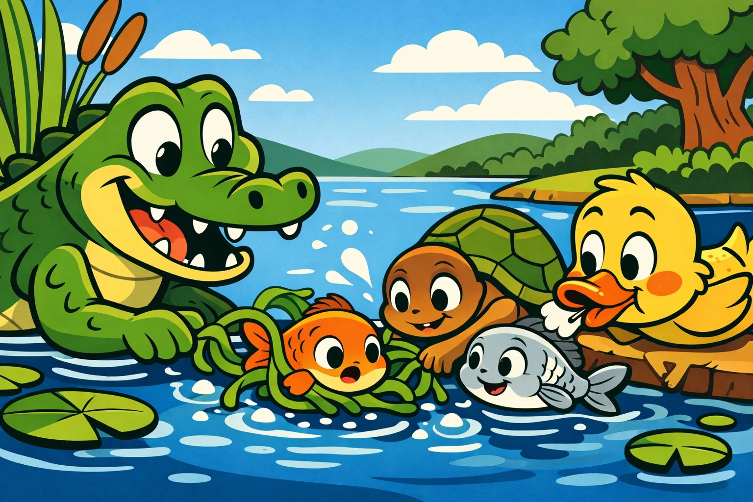 O akşam Nilüfer Gölü’nde bir dostluk daha büyüdü. Sevimli timsah Toprak ile parlak balık Deniz, sadece oyun arkadaşı olmadı; birbirinin kalbini anlayan iki gerçek dost oldu. Gölün suyunda baloncuklar hâlâ küçük küçük yükselirken, sanki hepsi aynı şeyi fısıldıyordu: Neşe paylaşınca çoğalır, arkadaşlık paylaşınca güçlenir.