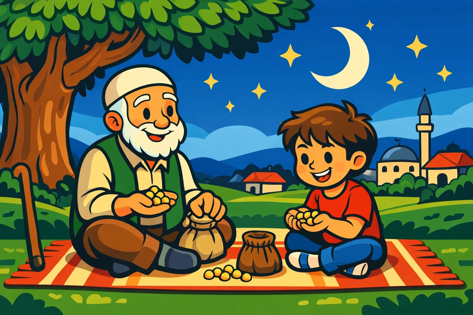 Bu sözler kalbine dokundu. Akşam olunca dedesinin kesesine iki nohut birden attı.